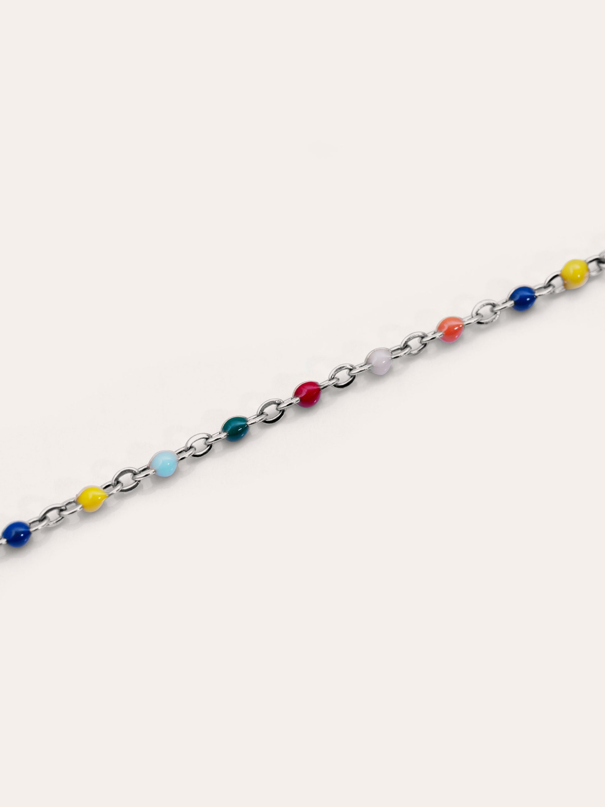 La Tobillera Doble Dots Colors Enamel, con mini cristales de colores es perfecta para verano. Una pulsera de pie de acero, resistente al agua y de colores. 🌈